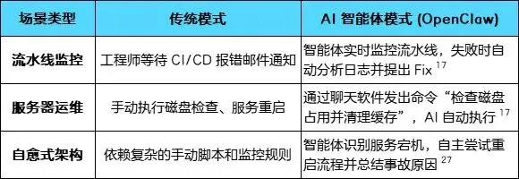 2. 增强阶段 (Augmentation): 引入 OpenClaw 等 Agent 框架,负责管理 CI/CD 流水线等子流程。
