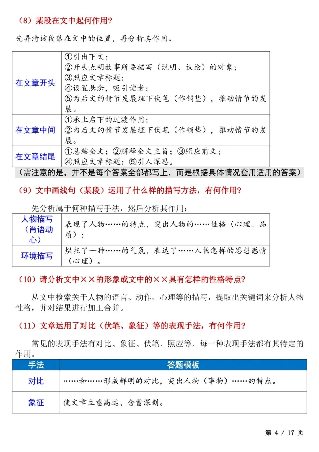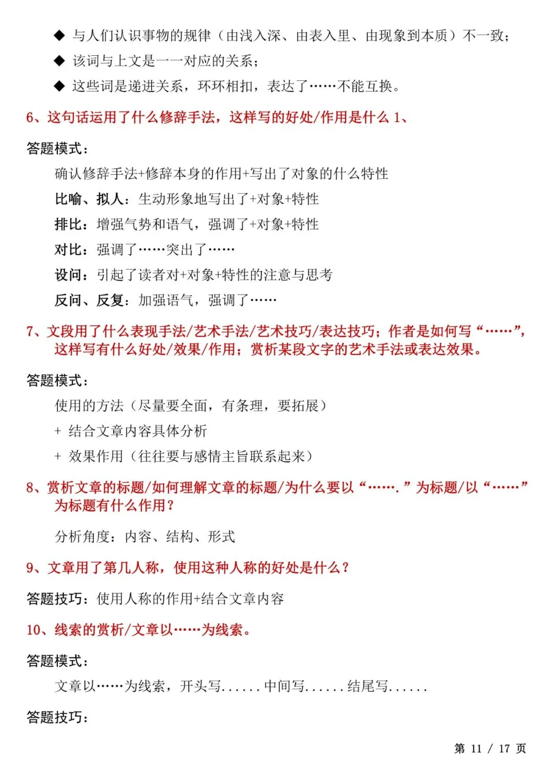 七年级下册语文考试重点题型答题技巧汇总电子版可打印
