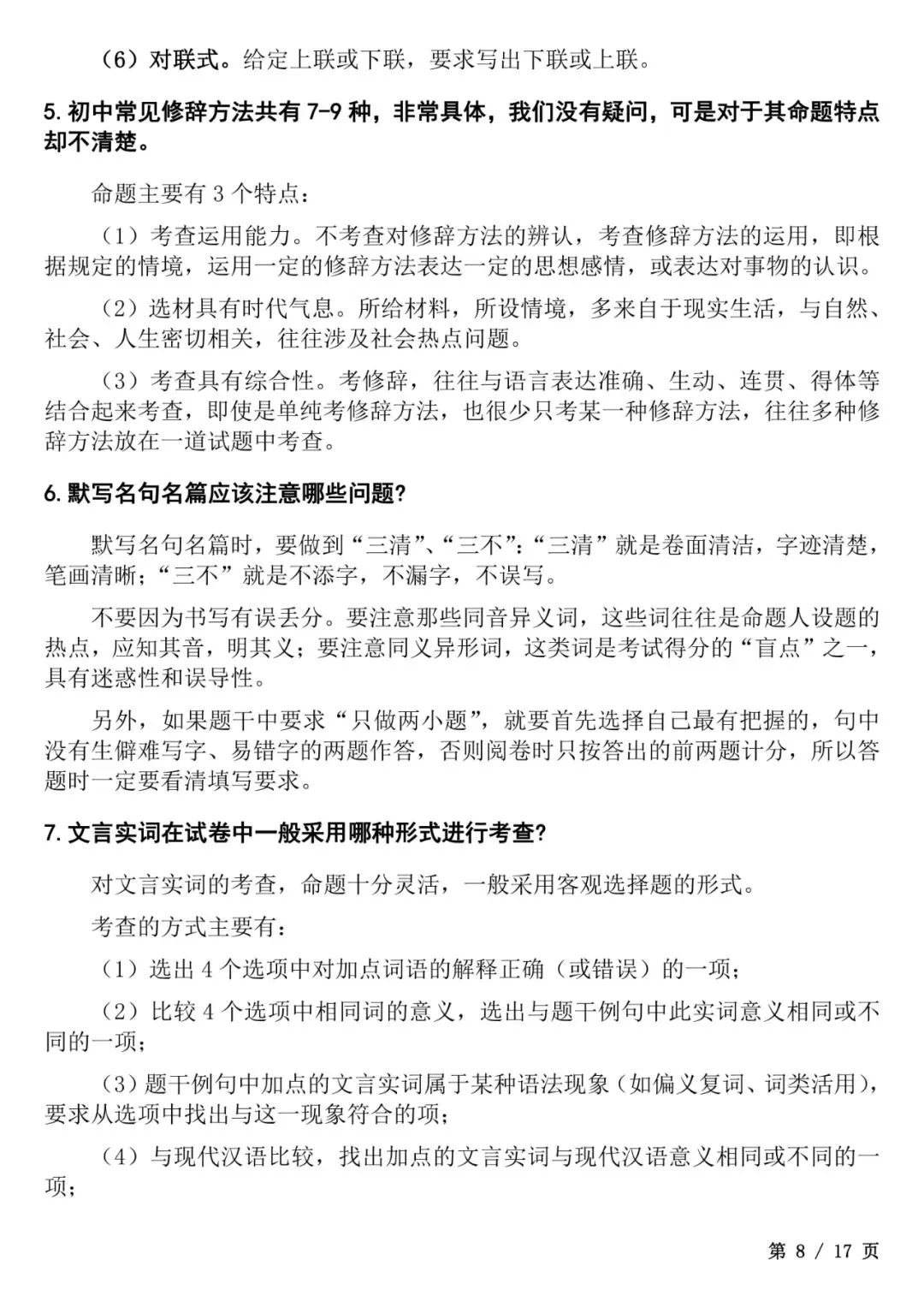 今日老师为大家整理了:七年级下册语文考试重点题型答题技巧汇总电子版可打印