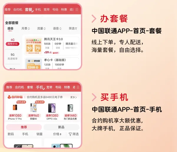 中国联通APP服务指引