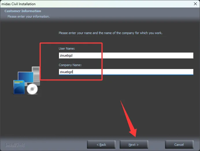 7、任意输入下面信息,然后点击Next。