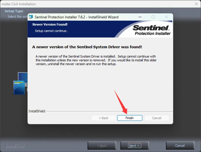 18、继续按提示安装Sentinel,如果和我一样提示电脑上已经安装更新版本,直接跳过就行。