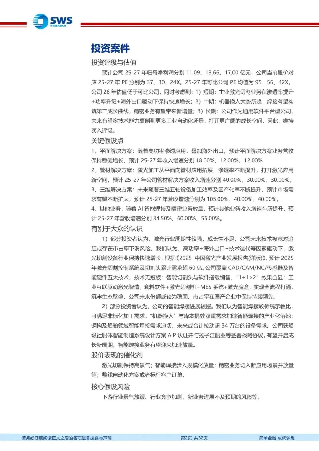 工业自动化软件平台型公司,多应用领域接力布局打开需求空间。公司业务方向涵盖激光切割、智能焊接、精密加工,其中激光切割公司在国内中低功率市场。