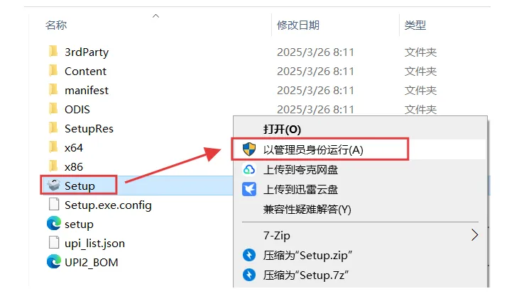 4.找到【Setup】,鼠标右键点击【以管理员身份运行】。