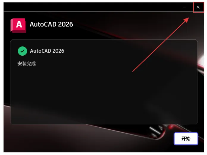9.安装完成,点击【X】关闭窗口。下面是激活教程