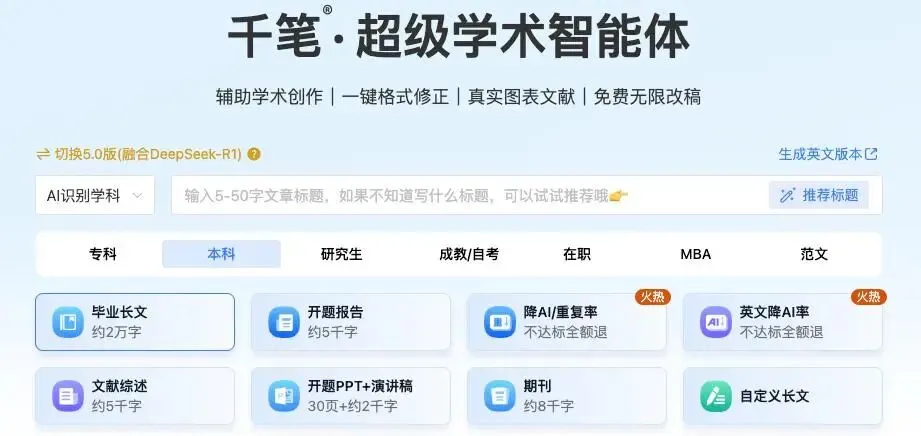 2.千笔AI(Qianbi AI):中文论文写作与全文生成平台(推荐指数:★★★★☆)