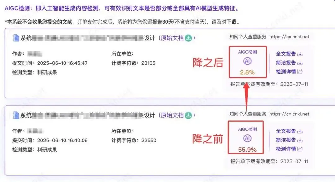 在初稿完成后,易笔AI论文工具能有效降低论文的重复率与AIGC率,把查重率和AIGC率稳控制在10%以内。该平台也提供人工降重和人工降AIGC服务,该服务能在不改动格式、保留专业术语的技术上,把AIGC率和查重率控制在5%以内,并提供知网查重报告,帮助文稿满足学术机构的审核标准。同时,平台还可开具正规发票,全面贴合学术写作的实际需求。