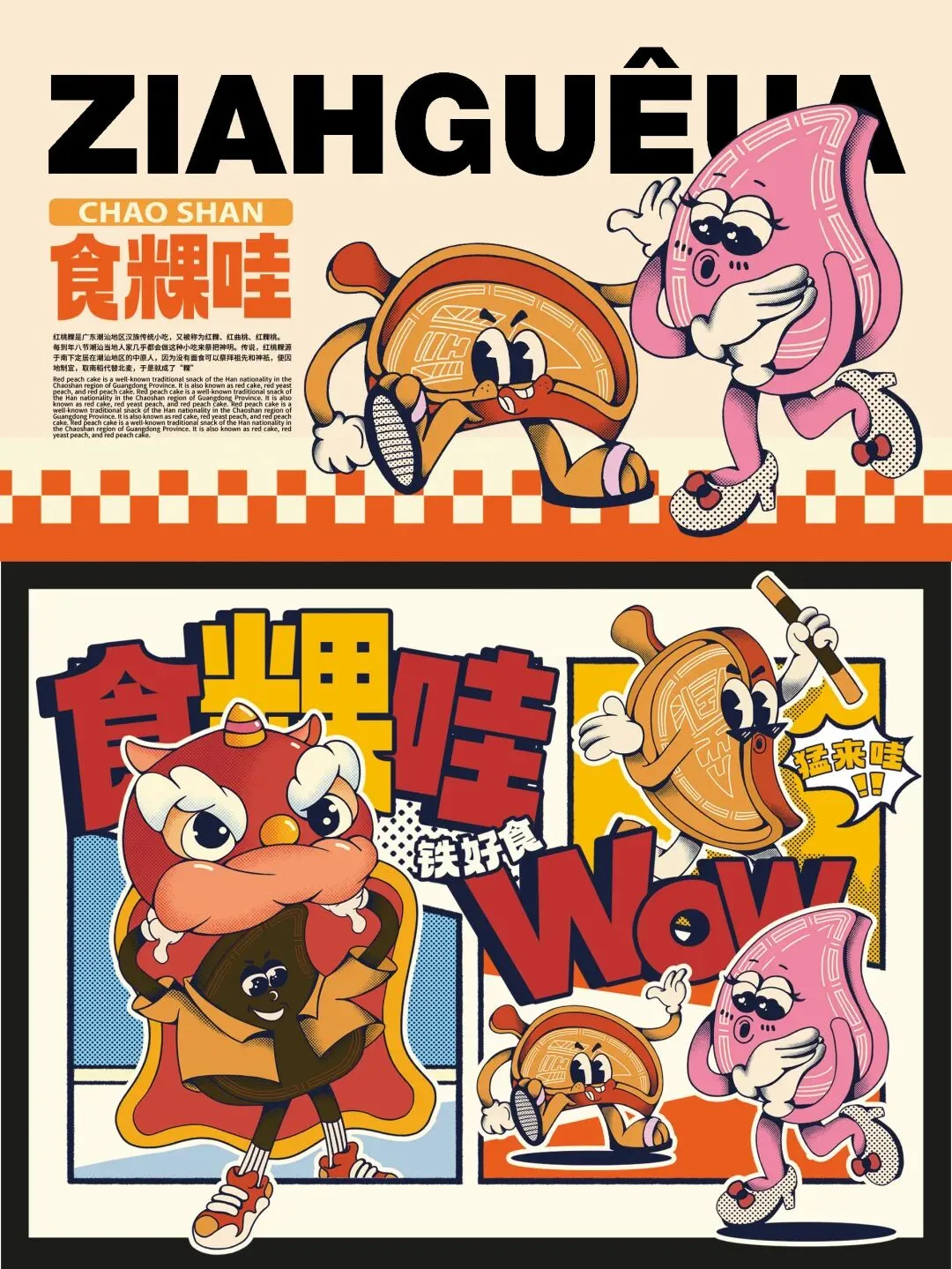 壮哉潮汕文旅!童年复古漫画风格的潮汕食粿IP设计