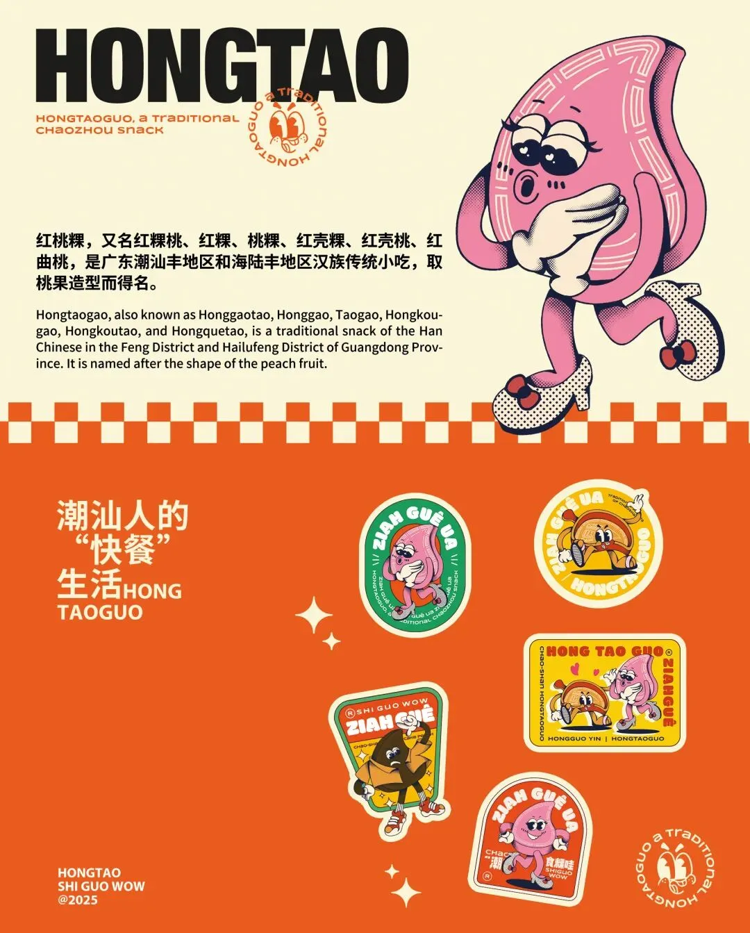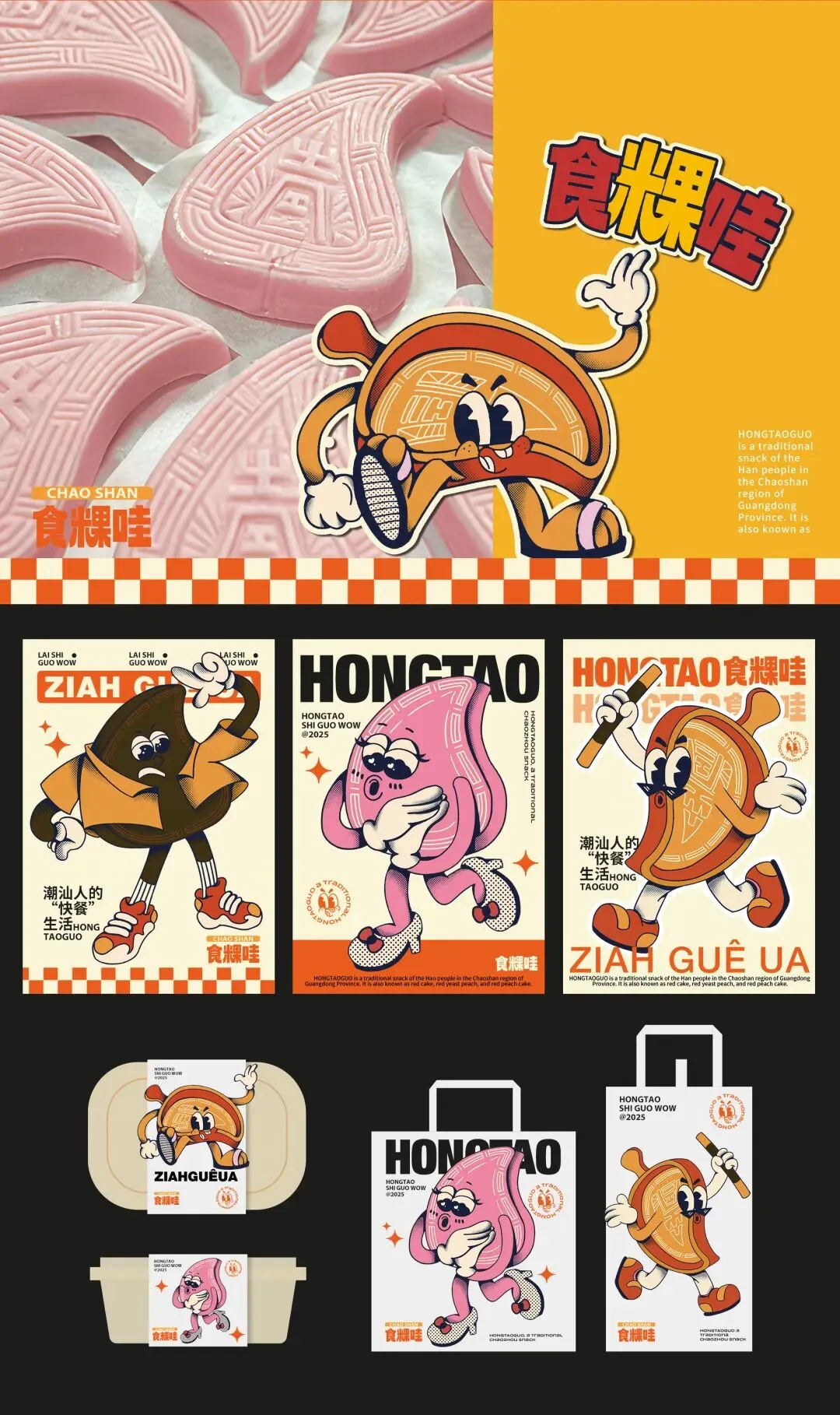 以潮汕人生活中必不可少的“潮汕食粿”为原型设计的IP,复古风+搞怪造型,十分贴合潮汕文旅市场推广场景,期待作者更多的落地应用场景。