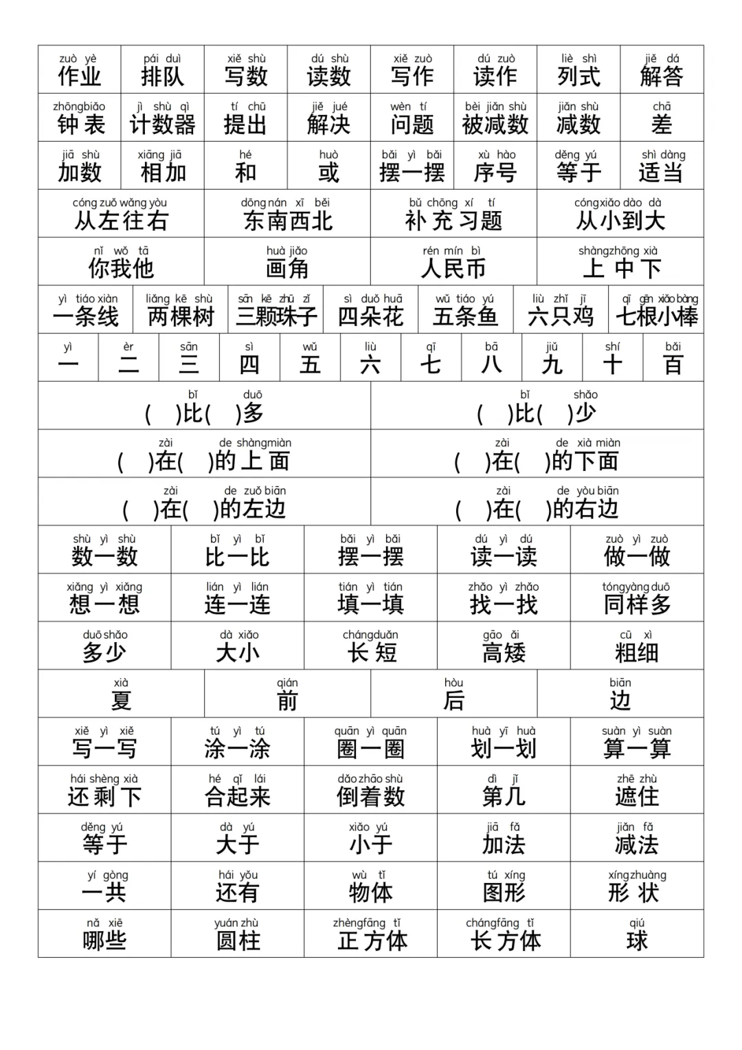 今日分享:【幼小衔接数学常用字词认读】,家长们快打印给孩子安排上吧;
