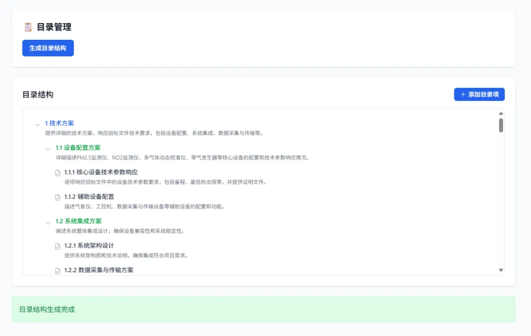 AI生成目录: 基于招标文件智能生成专业的三级标书目录结构 -