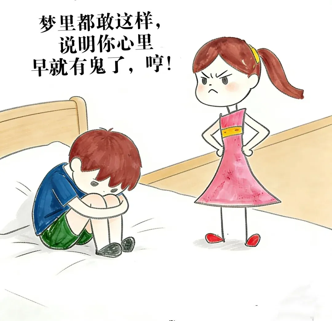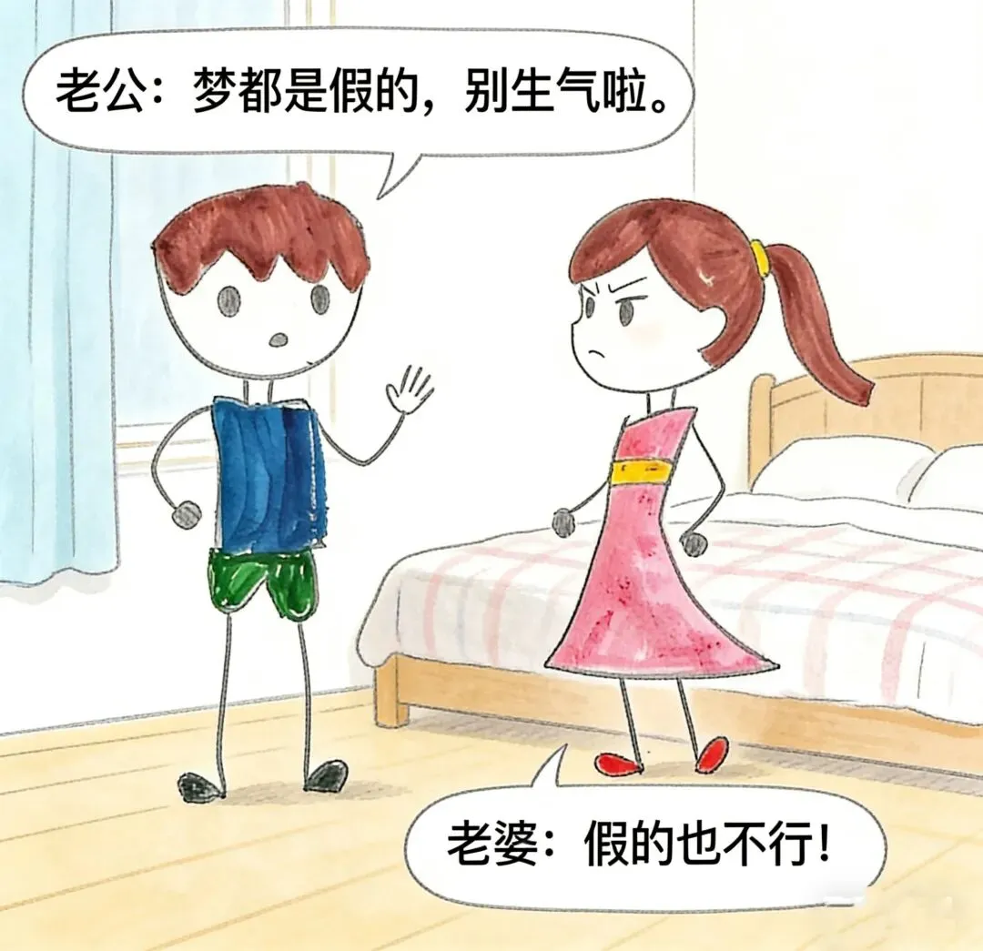老婆:假的也不行!梦里都这么开心,现实里还了得?梦里都敢这样,说明你心里早就有鬼了,哼!😡😡😡