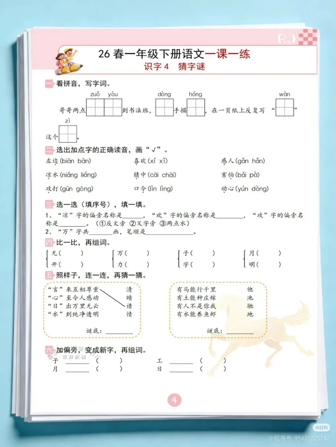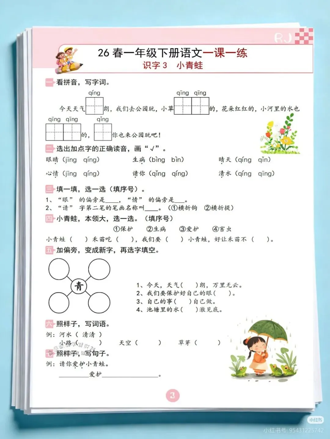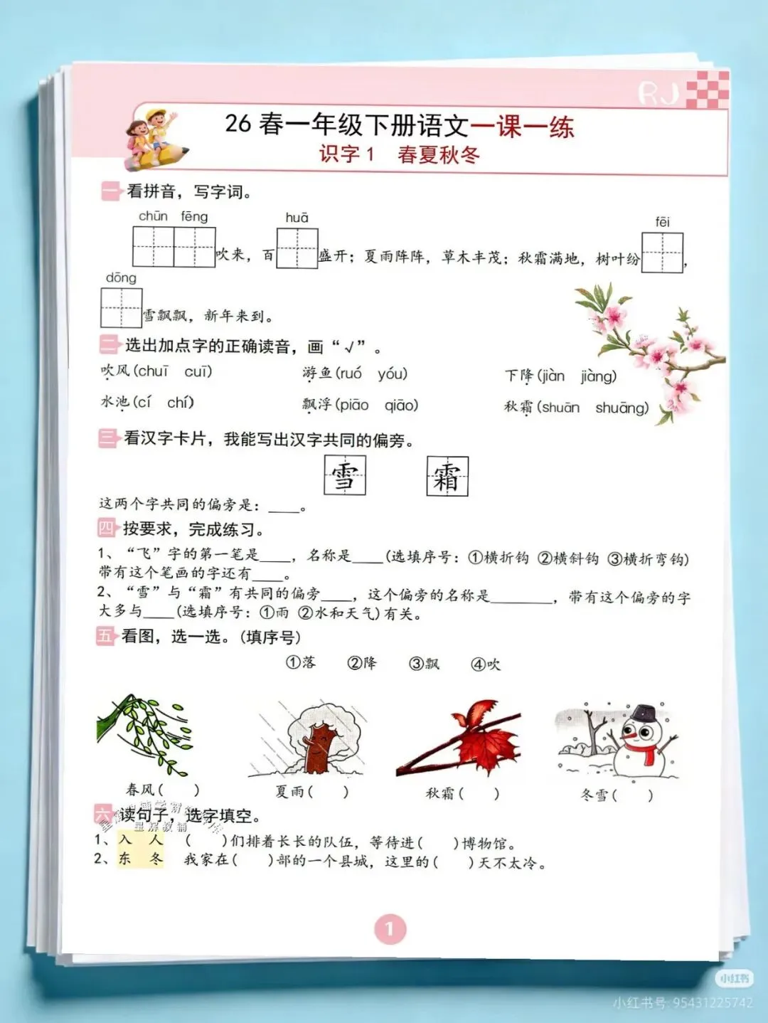 :严格对应2026春季新版一年级下册语文RJ(人教版)教材。 - 内容超全