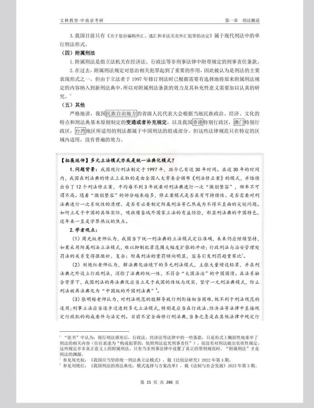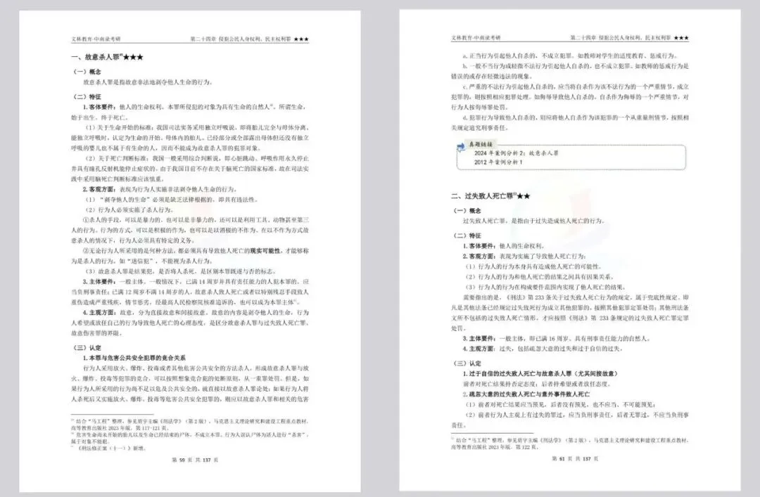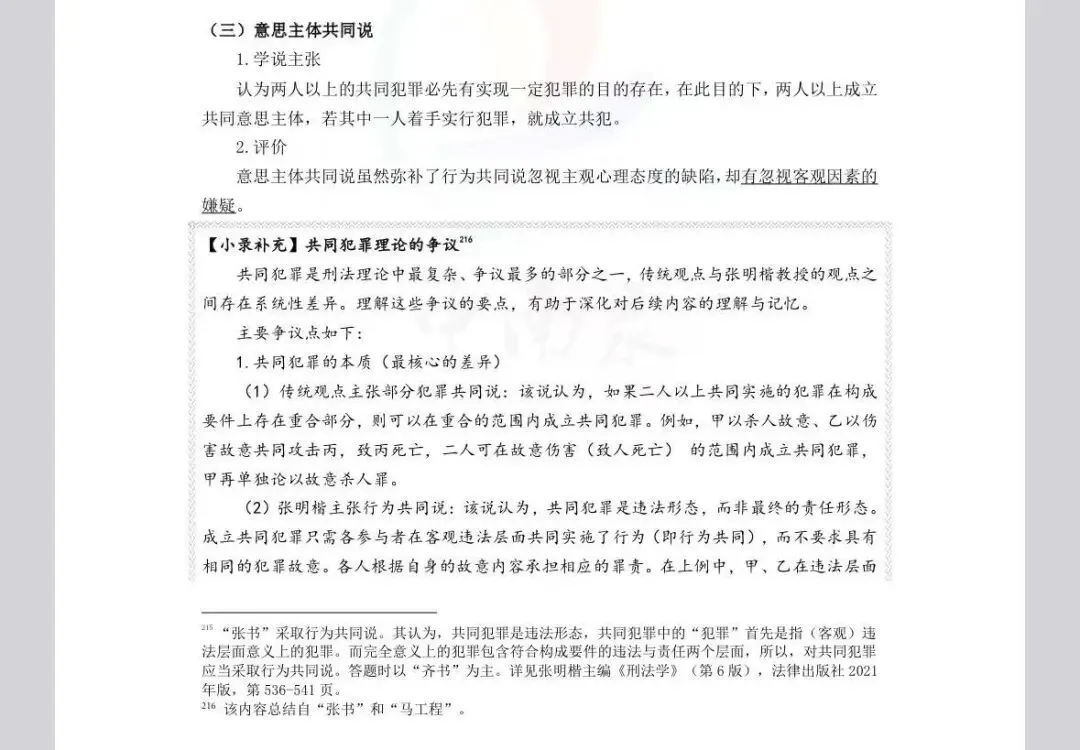 (4)补充溯源标注:针对27版讲义新增的所有知识点,均以规范的脚注形式明确标注来源,精准对应齐文远老师主编《刑法学》、张明楷老师编写《刑法学》、“马工程”《刑法学》(上下册)及相关新司法解释、刑法修正案等权威资料。便于考生快速溯源查阅原文、拓展学习,深入理解知识点的理论依据和法律支撑,避免记忆模糊,同时帮助考生全面掌握知识点,进一步提升复习效率与备考便捷度,为精准答题筑牢基础。