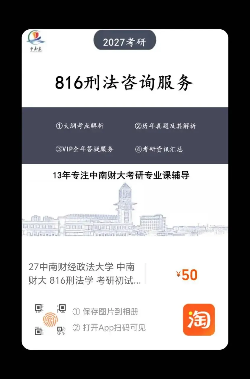 (1)真题链接:精心整理中南财816刑法学历年考研真题,搭建清晰规范的真题链接体系,将每道真题精准对应讲义中的具体知识点,标注真题年份、题型及考察侧重点。不仅能让考生直观了解各考点的命题频率、出题形式,还能帮助考生通过真题反推考点核心,明确复习重点,规避备考盲区,同时熟悉考试命题规律和答题思路,实现“学练结合”,提升应试能力。