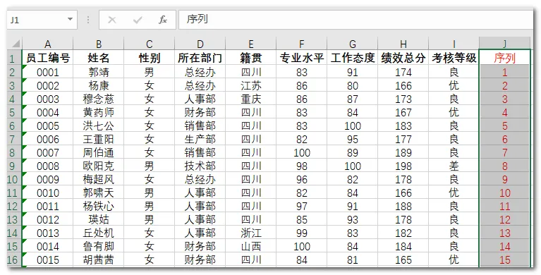 四、利用辅助列巧妙恢复表格排序前的顺序