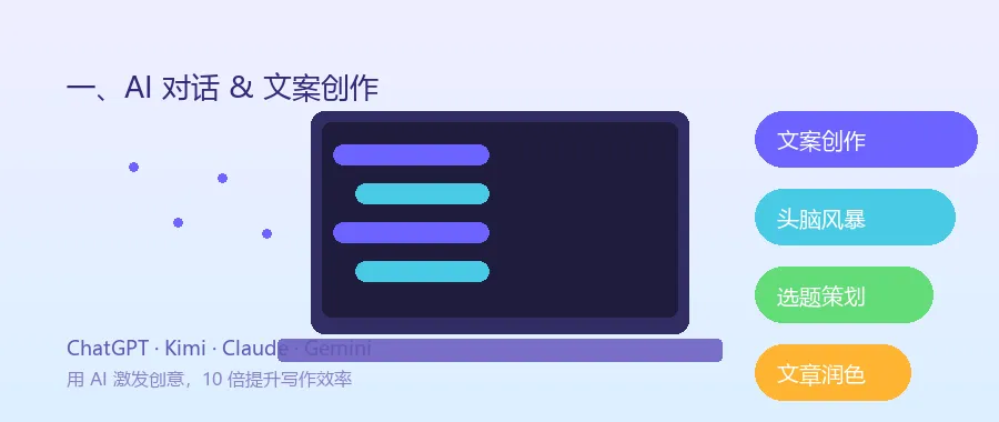 ▲ AI 对话与文案创作工具,让写作效率提升 10 倍