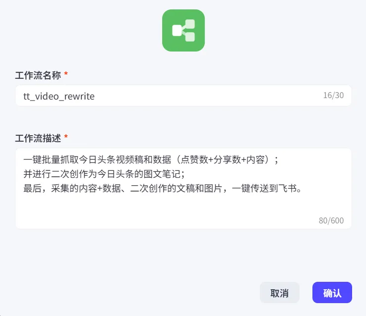 当然,除了今日头条的自动采集与二创外,还有小红书自动二创、抖音笔记获取、小红书笔记一键生成、公众号文章一键生成等多个工作流。