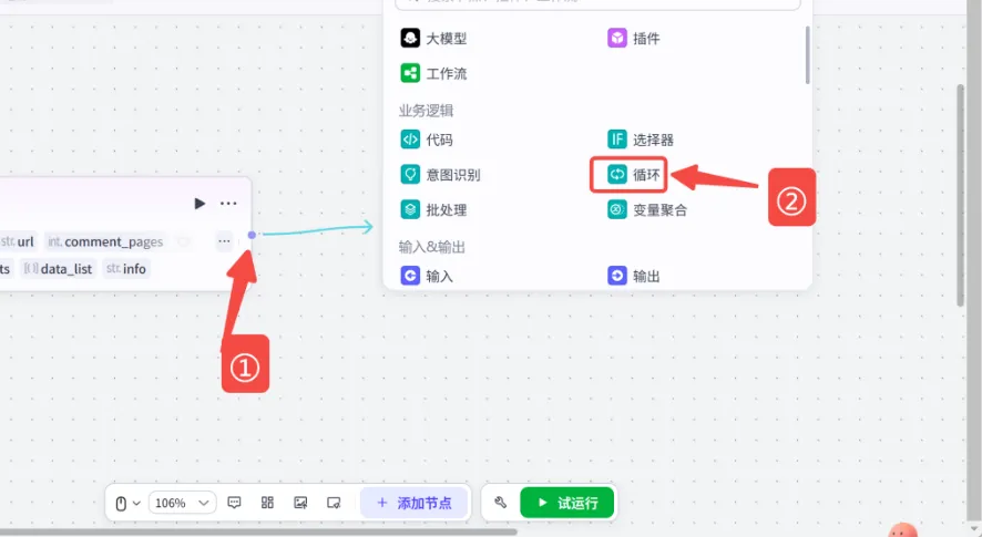 3)【循环】节点里面还需要设置12个节点,设置这些节点很重要,整个工作流的成功与否很多程度在于下面的12个节点。