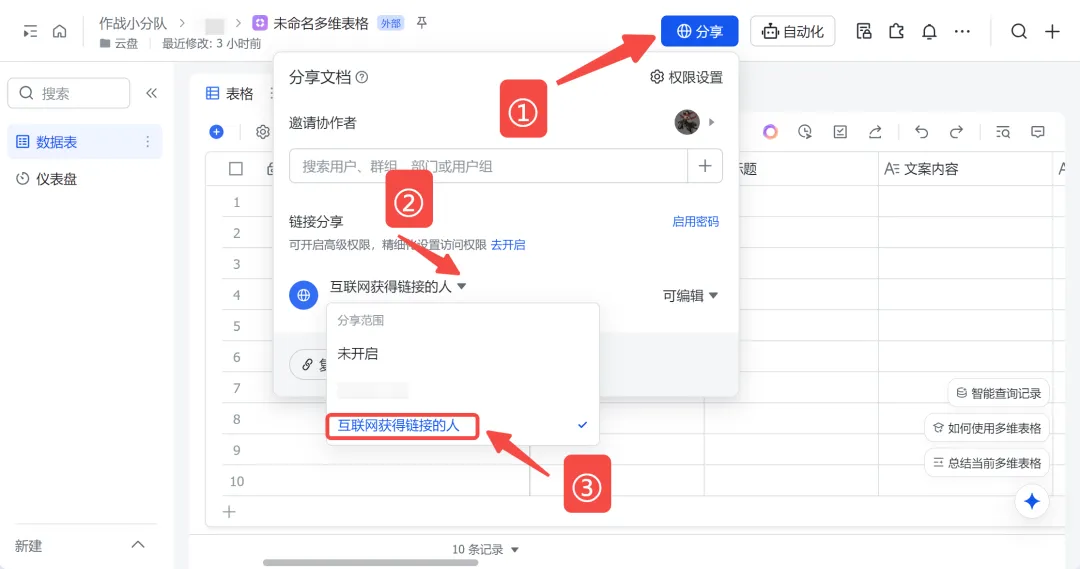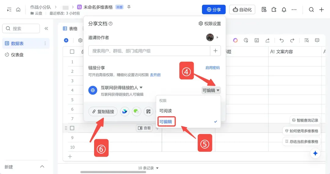 运行工作流需要创建一个飞书多维表格,表格设置需要做两步: