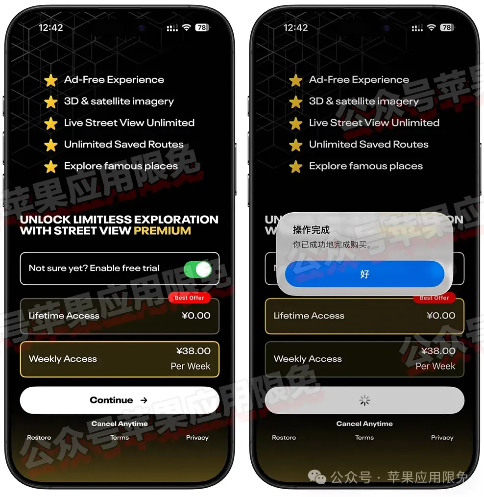 一款主打街景探索功能的导航软件,目前可以免费获取它的终身订阅,打开软件就会弹出内购,显示0即可免费获取,设备需iOS16或更高版本。