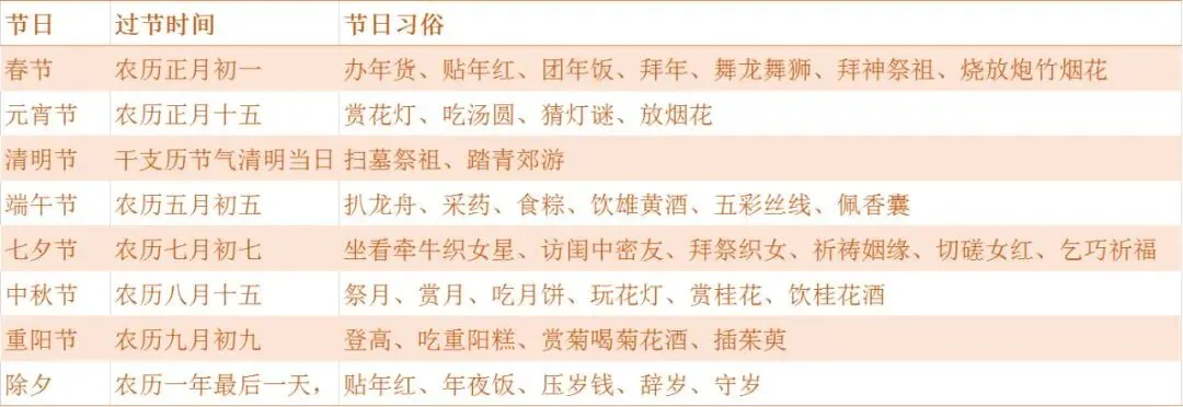 中国传统节日以及节日习俗表