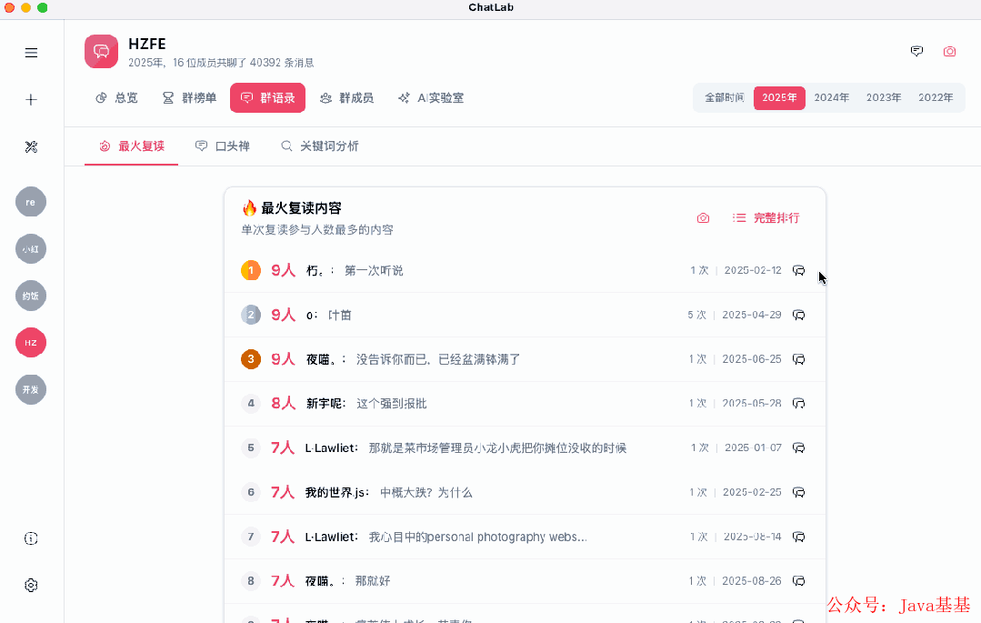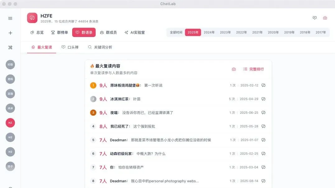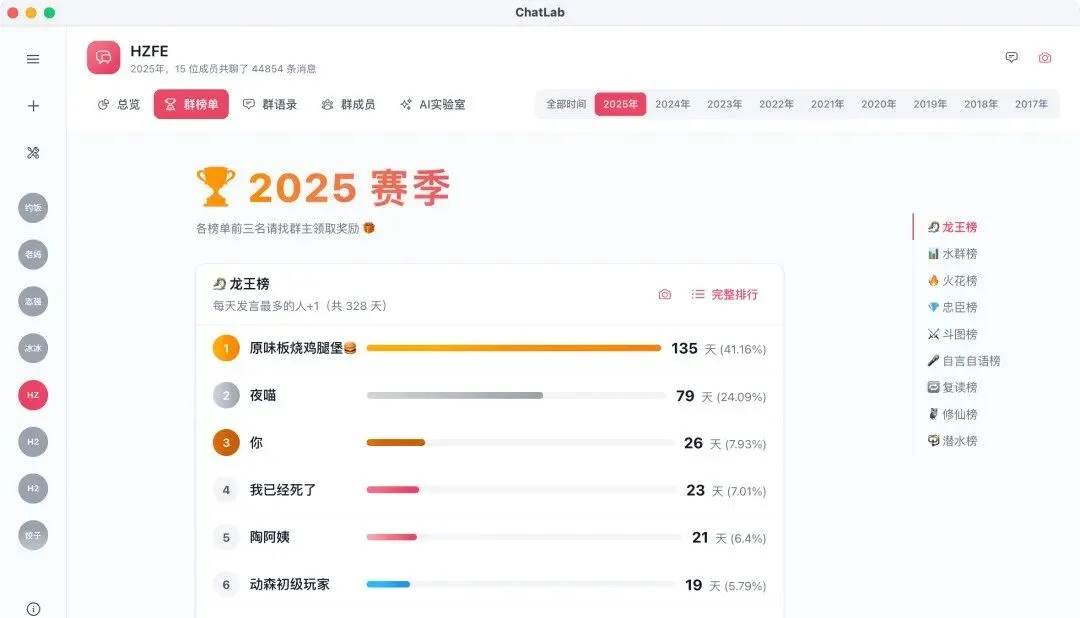年度榜单自动生成——谁是话痨王、谁是潜水冠军,不用你手动数。