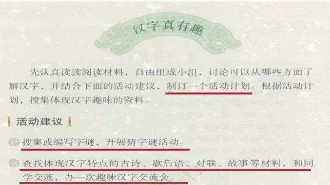 2.讲汉字小故事、谐音歇后语或笑话,以及形声字的意义及演变。3.创办以“汉字真有趣”为主题的手抄报。