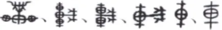 金文是铸刻在铜器上的文字,又称铜器铭文,主要在商周时期使用。字形线条粗壮,早期部分字形象形性还很明显,西周晚期之后,字形逐渐规整和美观。中晚期作与现在的繁体字“車”差别不大。有些字形繁简差别很大,如“车”: