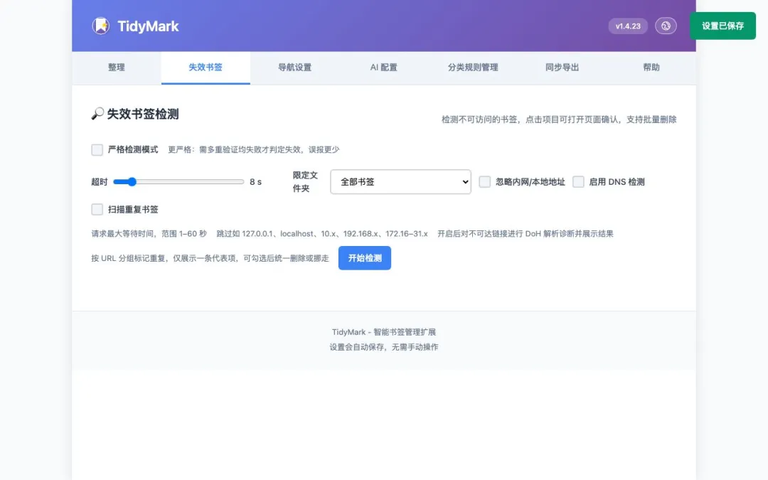 一键分类 + AI 辅助 + 死链检测 + 云端备份 + 新标签页导航