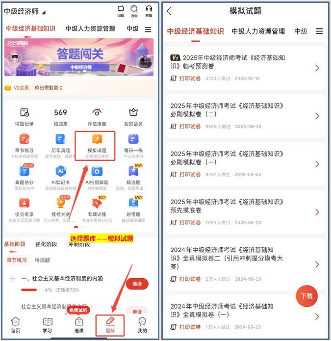下载 233 网校 APP,选择中级经济师科目即可进入题库