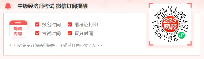 2026年初中级经济师证书考试时间11月,报名时间在7-8月开始,各省市区时间不同,担心错过报名时间,可以扫码进入订阅所在地区的报名消息提醒。