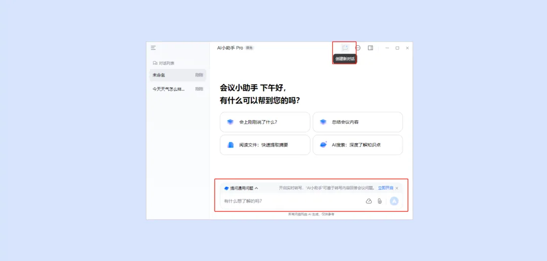 支持在 AI 小助手中创建新对话。