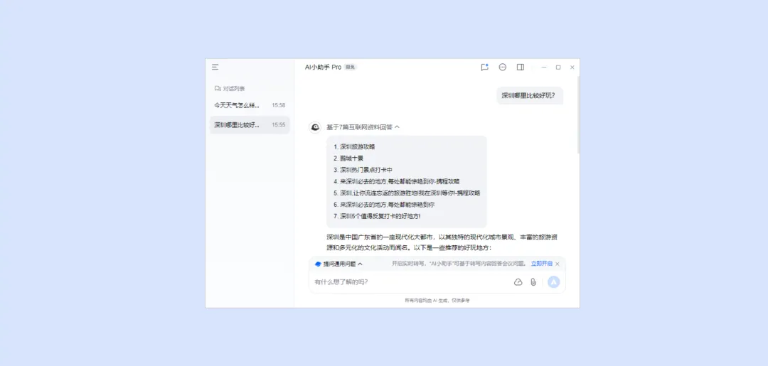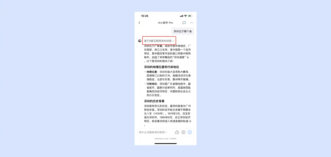 在聊天区发布您想要了解问题,AI 小助手支持互联网搜索解答疑惑,并查看回答引用来源。