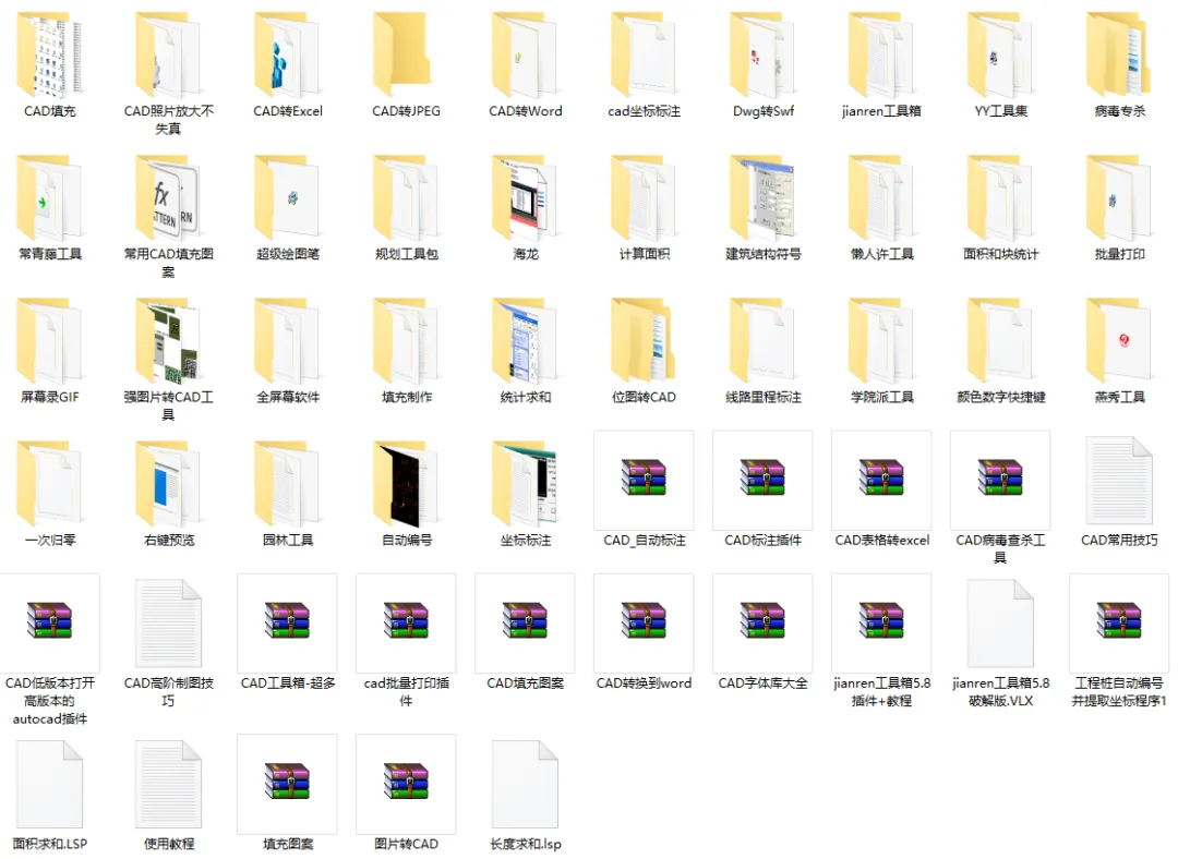 这份《60+款CAD开挂小插件》,送给你们用,里面大概有70个小工具,cad双倍加速器、