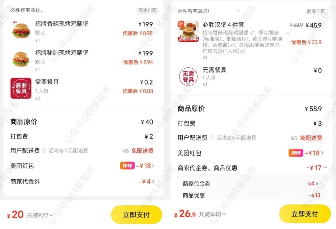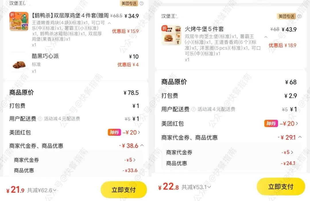 叮!肯德基app十周年,23炫5原味鸡,23炫K萨+2原味鸡;必胜客!20炫2汉堡,26炫汉堡4件套,汉堡王!21炫鹅鸭杀联名双层厚鸡堡5件套+派