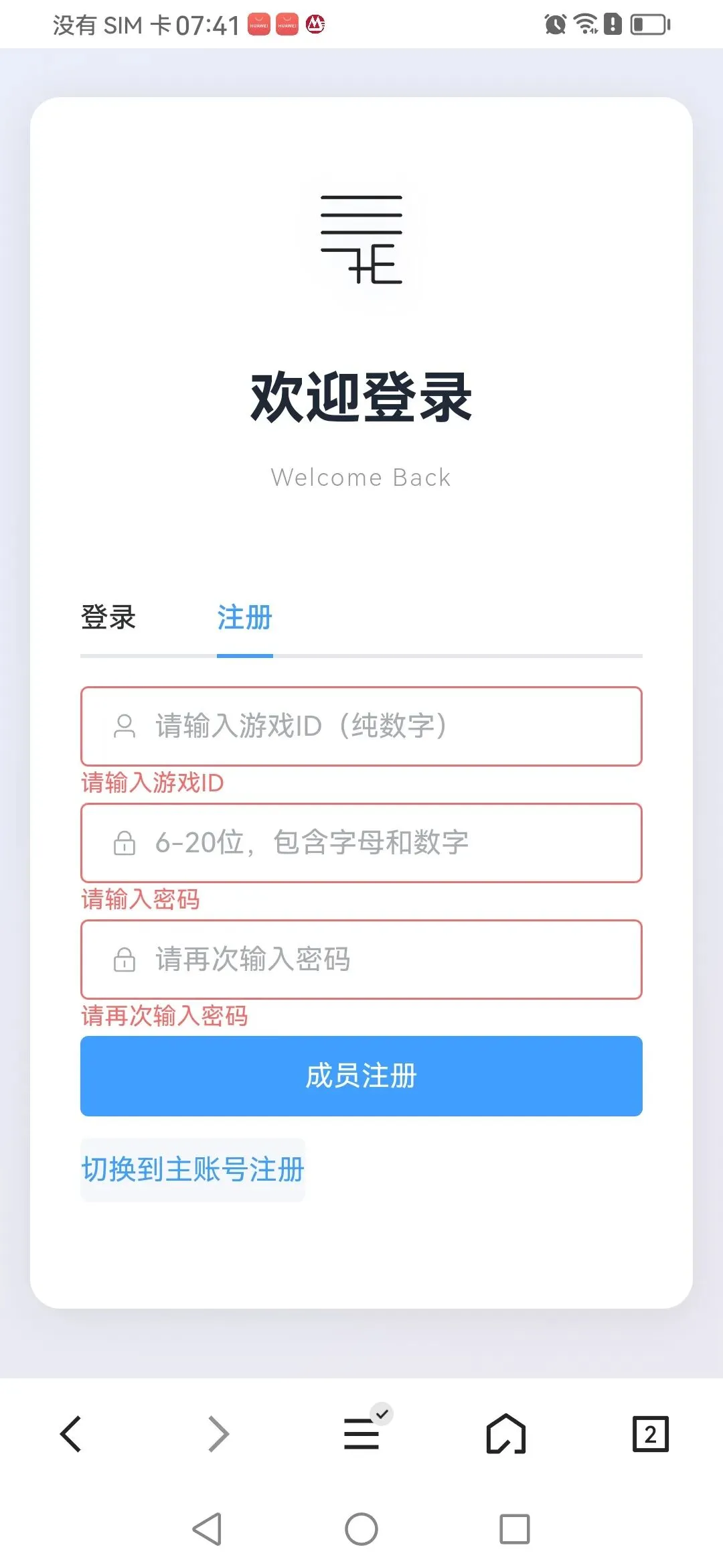 子账号注册:需主账号右上角更多功能里面点锁定成员之后方以注册,账号自己游戏数字id,密码(带英文➕数字)所有账号登录成功点我的绑定自己游戏角色。