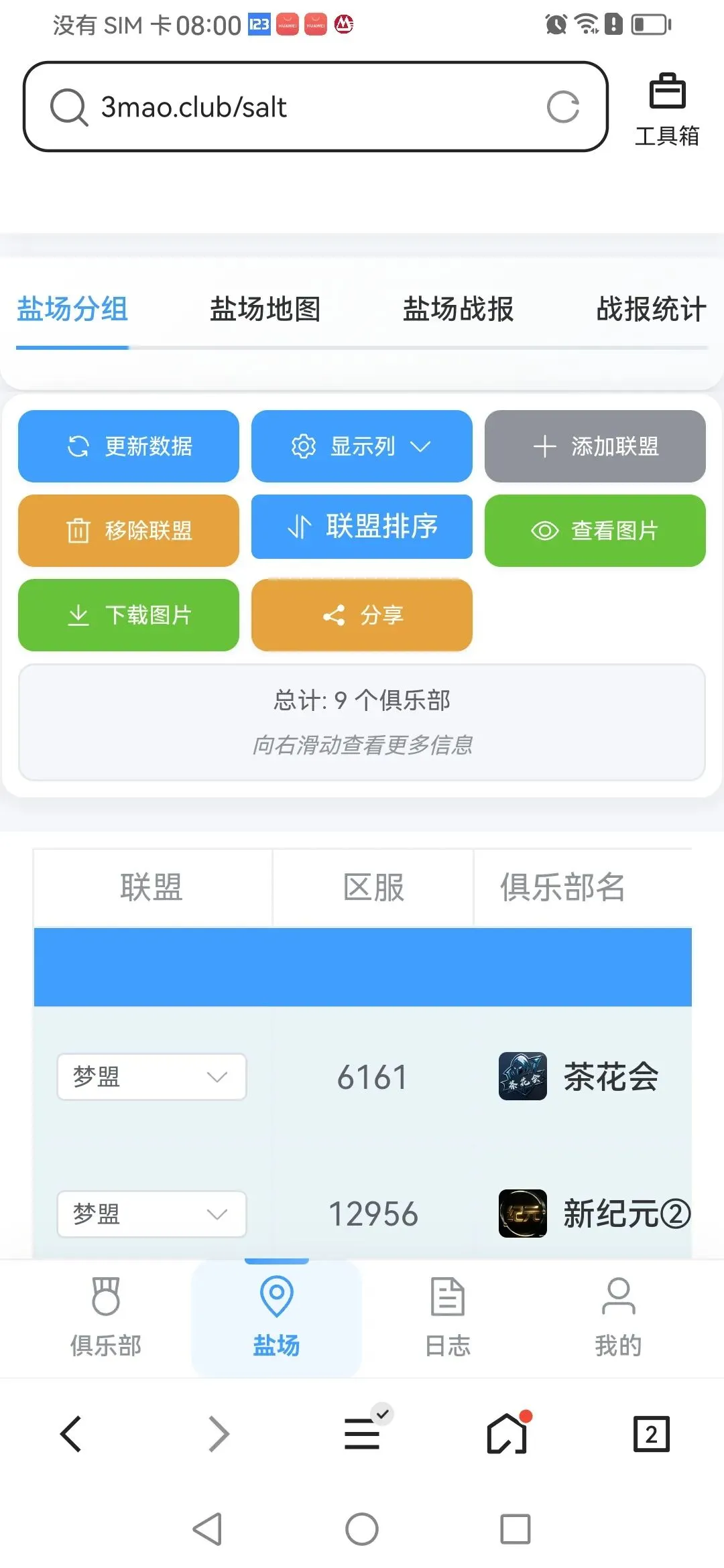 功能1:盐场分组(更新数据,下载图片。联盟排序可选大联盟靠上就选大联盟1梦就选梦1)