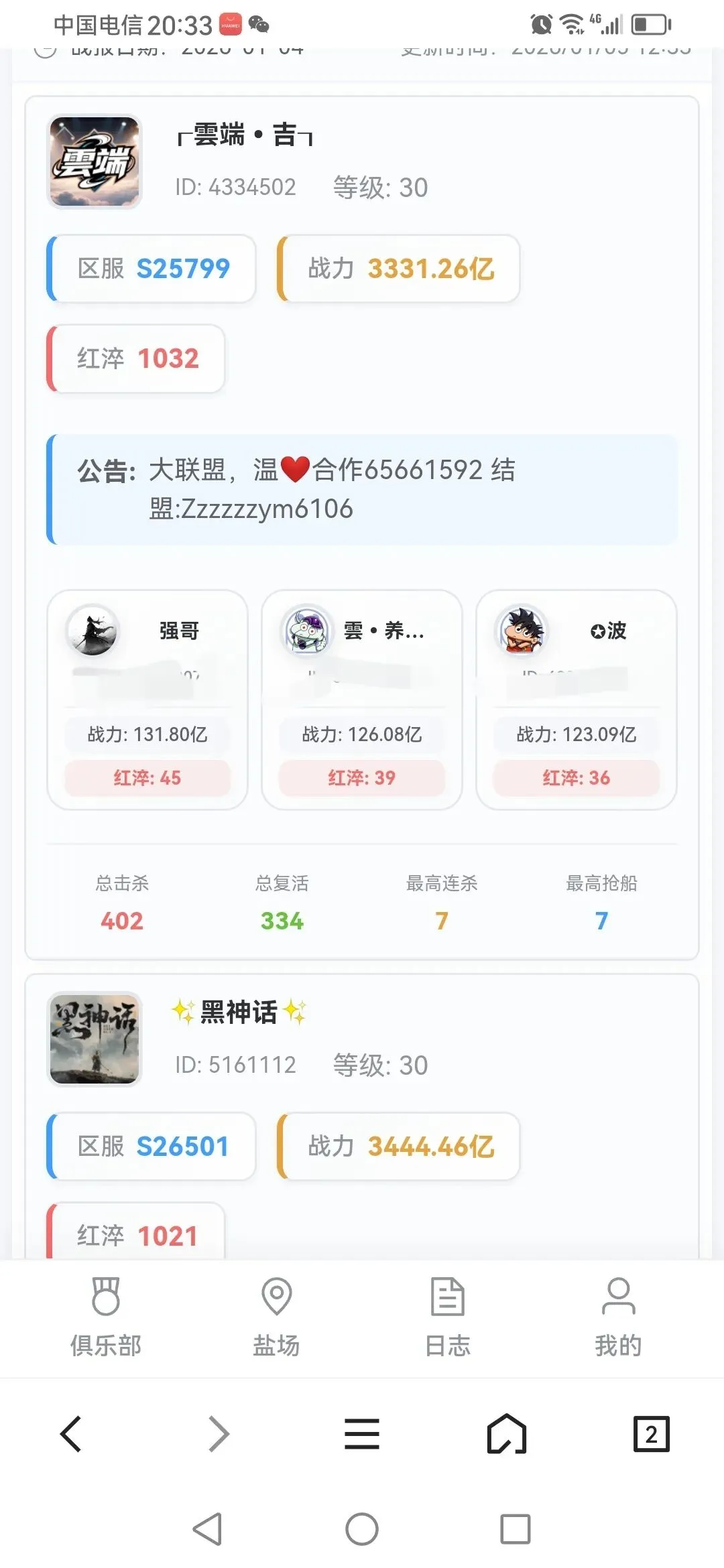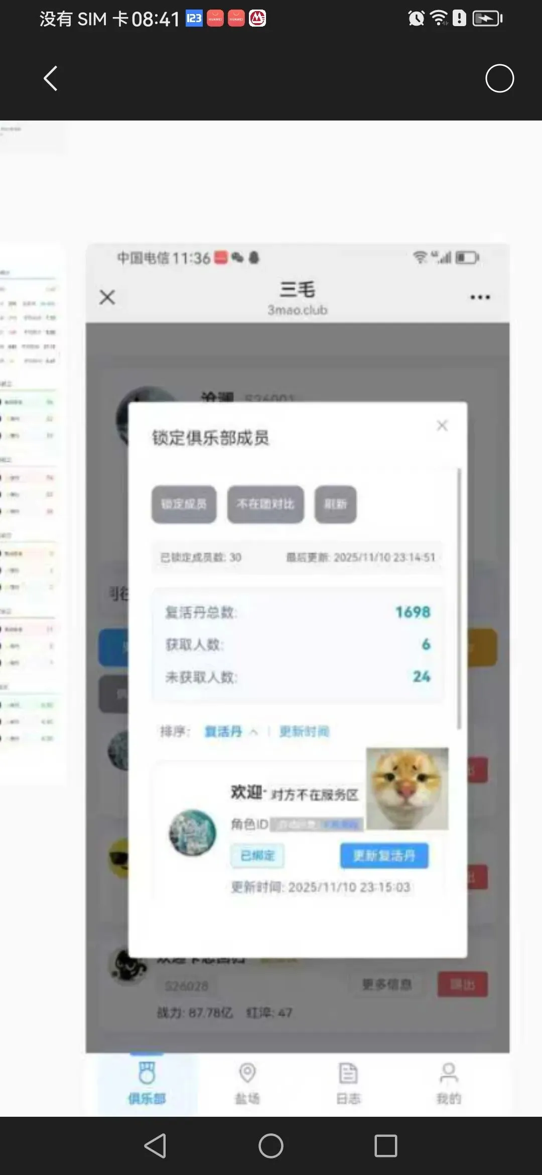 功能4:俱乐部复活丹统计,需成员绑定子账号,主账号更新
