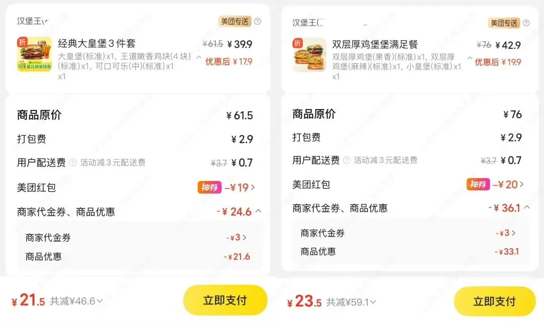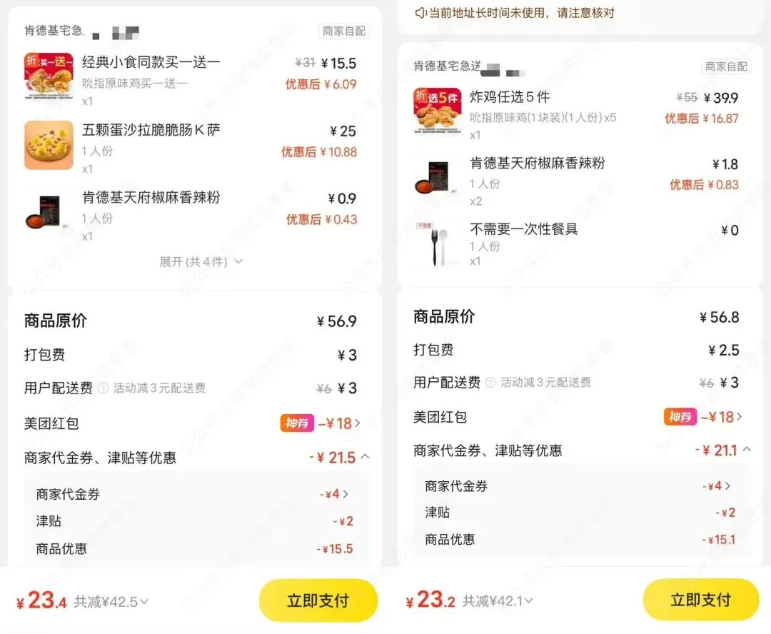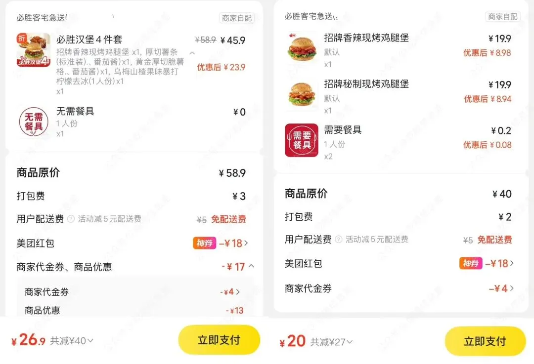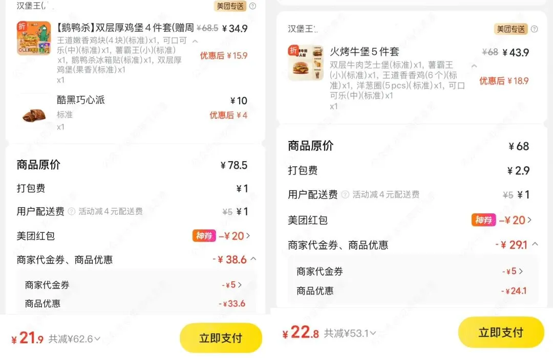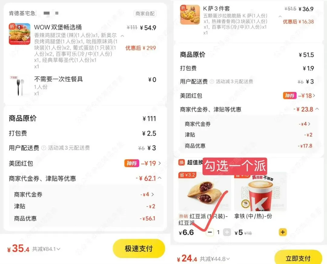 肯德基app十周年活动,23吃5原味鸡,23吃K萨+2原味鸡;必胜客20吃2汉堡,26吃汉堡四件套;汉堡王21吃鹅鸭杀5件套+冰箱贴;20喝喜茶2杯