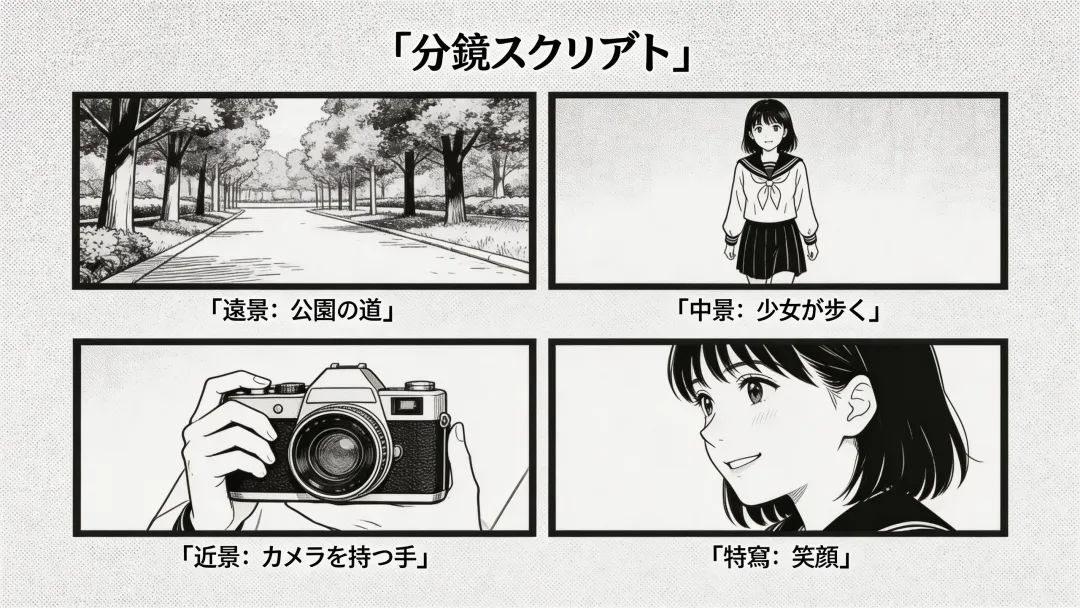 1. 按剧本顺序,拆分每一幕为单个镜头(如全景、中景、近景、特写,适配不同场景需求);