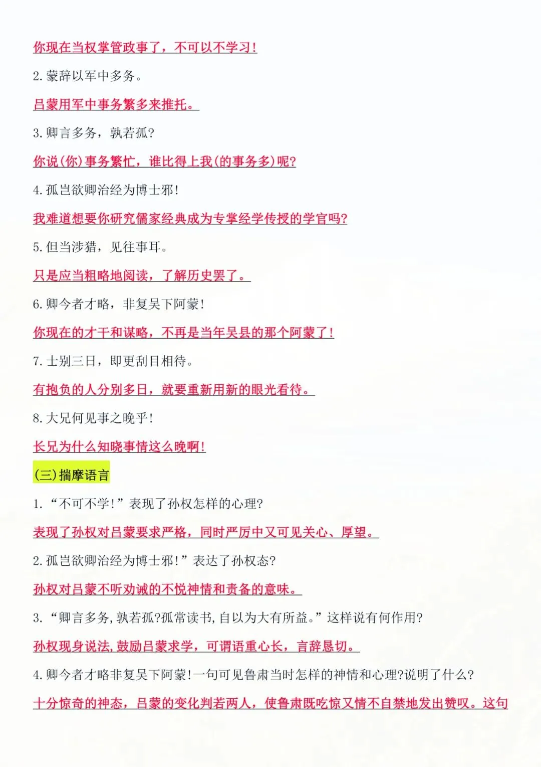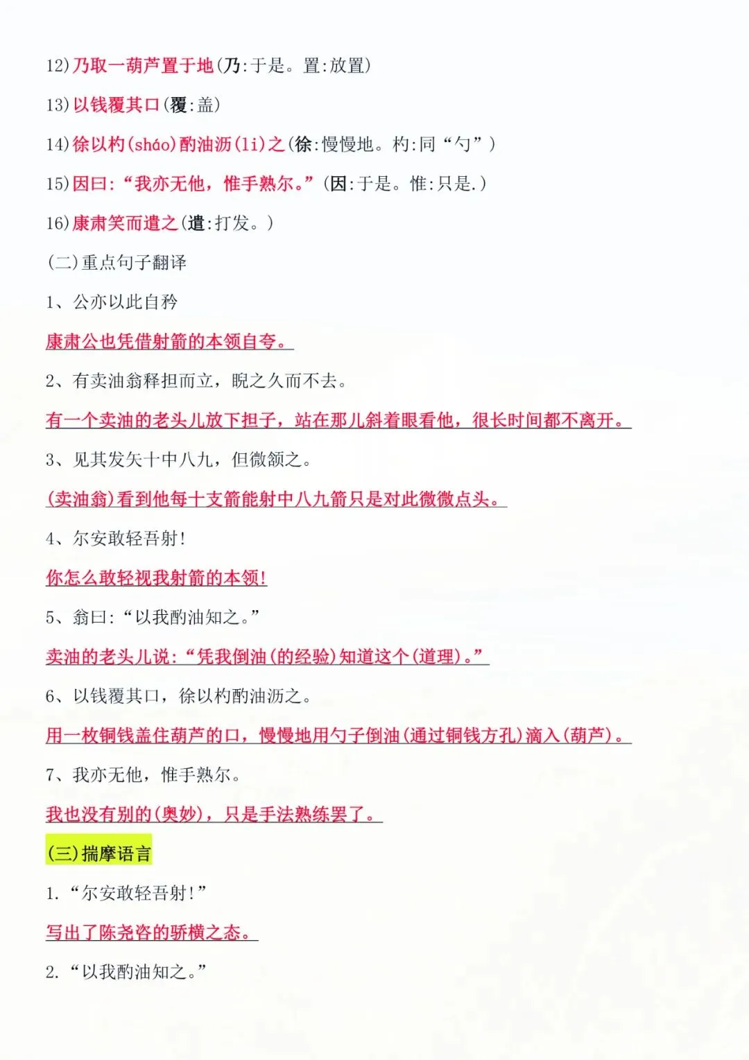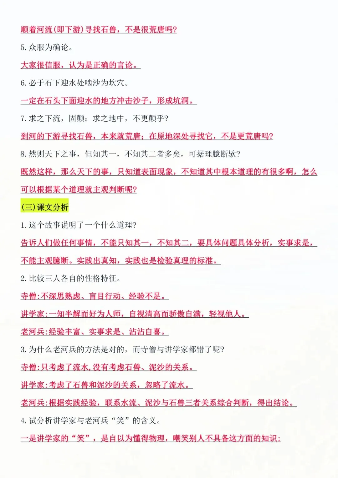 七年级下册语文 文言文知识点汇总 电子版可打印