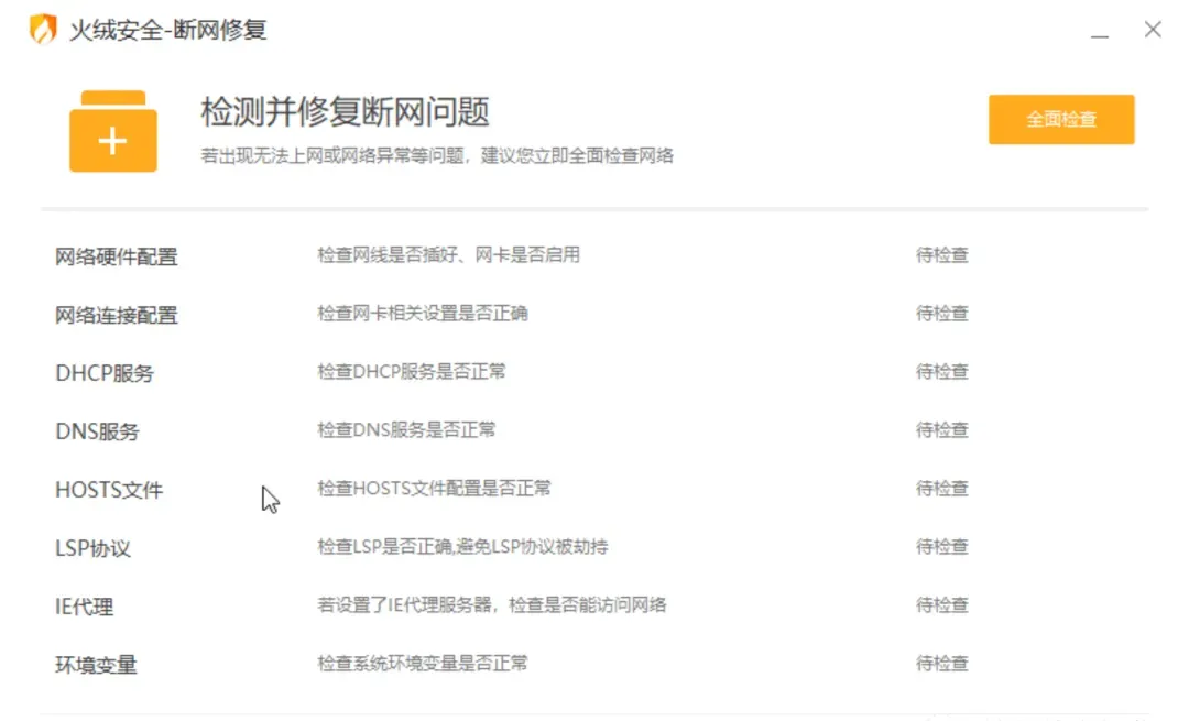 火绒的断网修复功能可以帮助我们快速定位并解决断网问题。