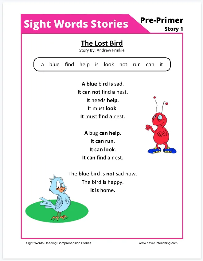 今天给大家准备的是一套将高频词训练与阅读理解深度融合的练习资源——《Sight Words Reading Comprehension Workbook》。这套练习册的设计理念非常科学:孩子只有对高频词达到“一看到就能反应”的自动识别程度,才能把脑力解放出来专注理解文本内容。