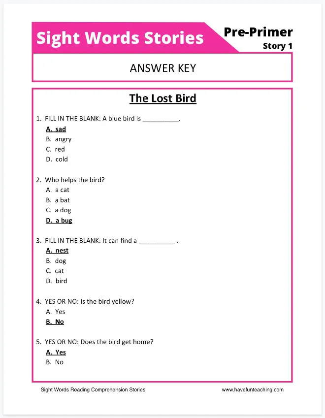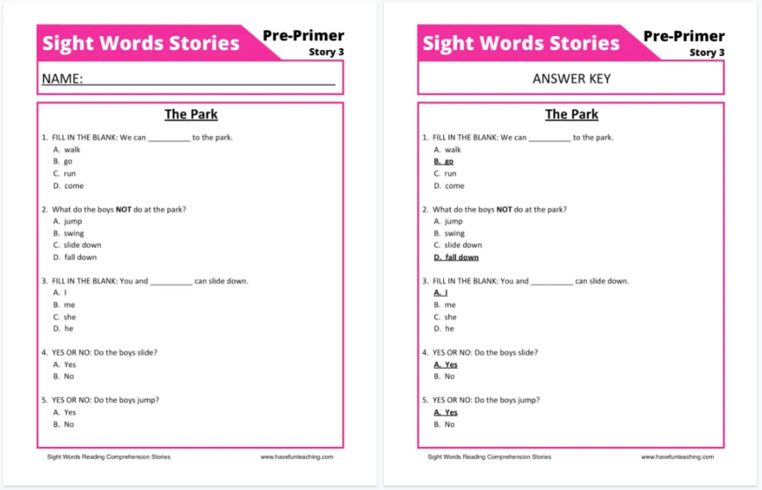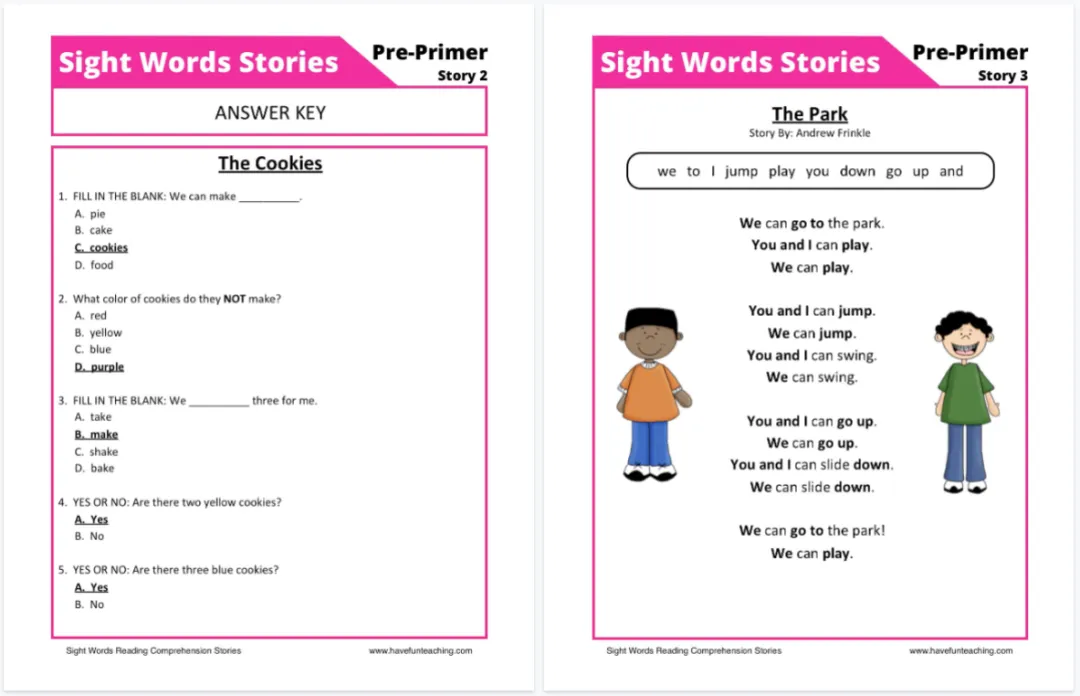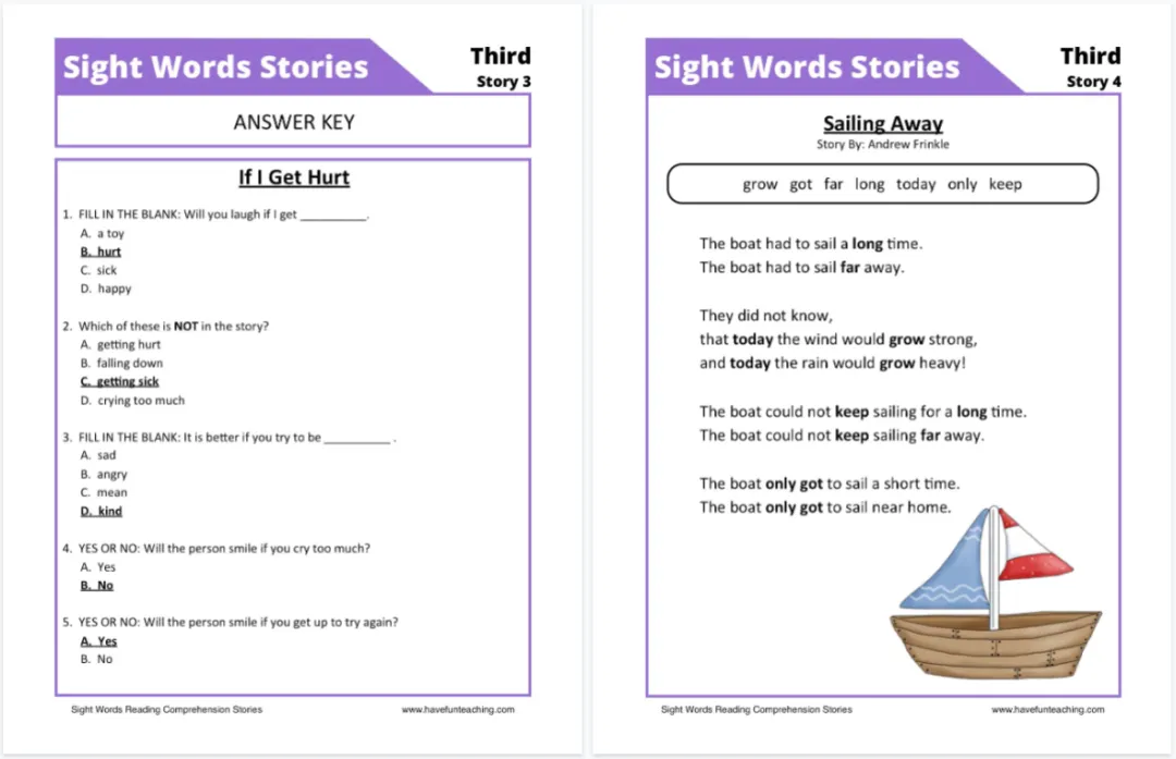 这套《Sight Words Reading Comprehension Workbook》正是基于这一科学理念设计的:在阅读中巩固高频词,在理解中运用高频词。这种设计让学习形成完整闭环:先认词、再读文、后理解、再巩固,每一步都踩在点上。