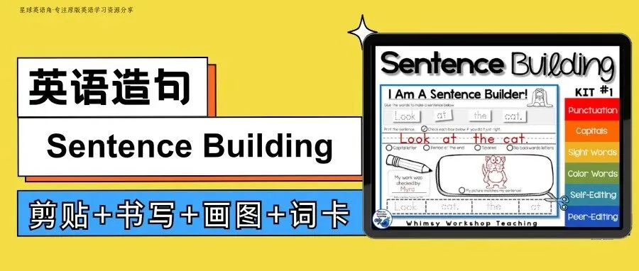 英语连词成句《Sentence Building》1-3册,200多页造句练习册,剪贴+书写+画图+词卡!让娃在玩中学会写句子