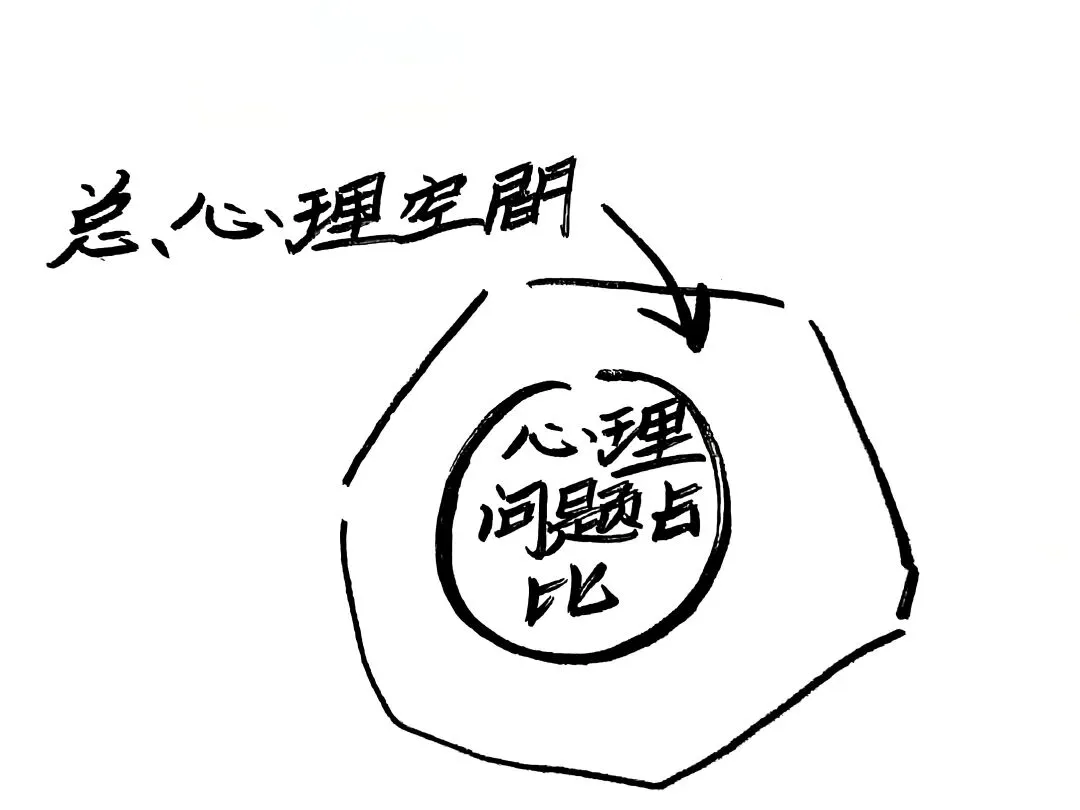 比如说这是你的总心理空间,这个小圆圈是你的心理问题在心理总空间中的占比。在稀释之前,心理问题占整个心理空间的比重较大。