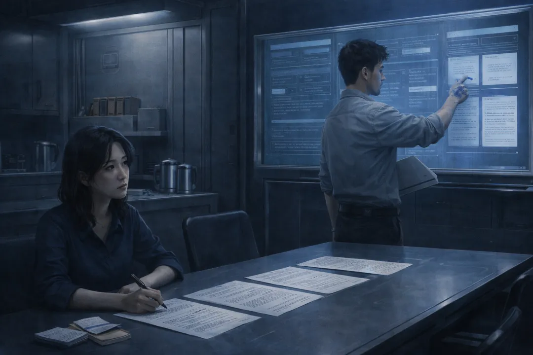 她本该松一口气。可不知为什么,真正先压到她胸口的,却是另一种更慢的东西。她望着台面中央那行最短的答复,忽然想起下午投屏上那道干净的删除线。纸只薄薄一页,拿在手里却比早上重。她知道以后再有人来改字,大概只会比今天更顺手。这个念头像海潮往里顶,不响,却没地方退。