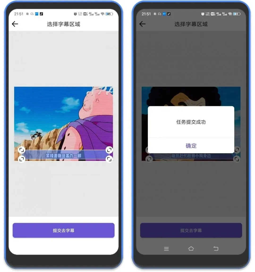 2、专门去本地视频字幕和水印,它并非简单地将字幕区域打码,而是通过AI模型分析字幕周围的像素纹理,智能计算并填充被字幕遮挡的背景。只需要框选中字幕区域,点击提交就可以一键去字幕水印,操作简单。
