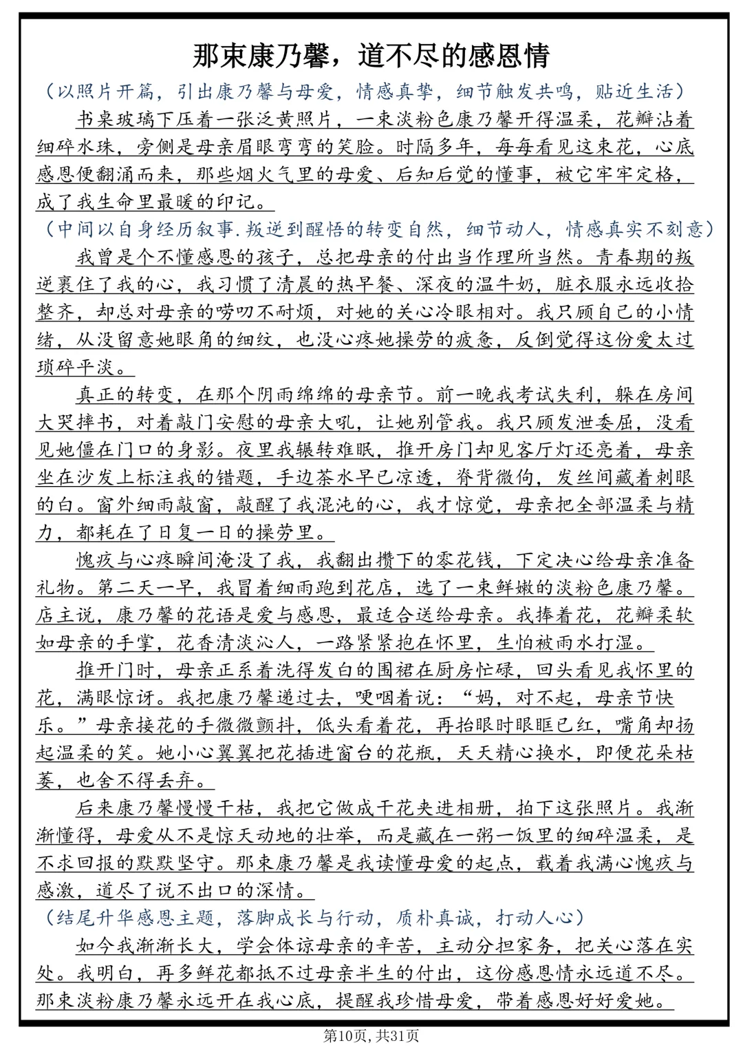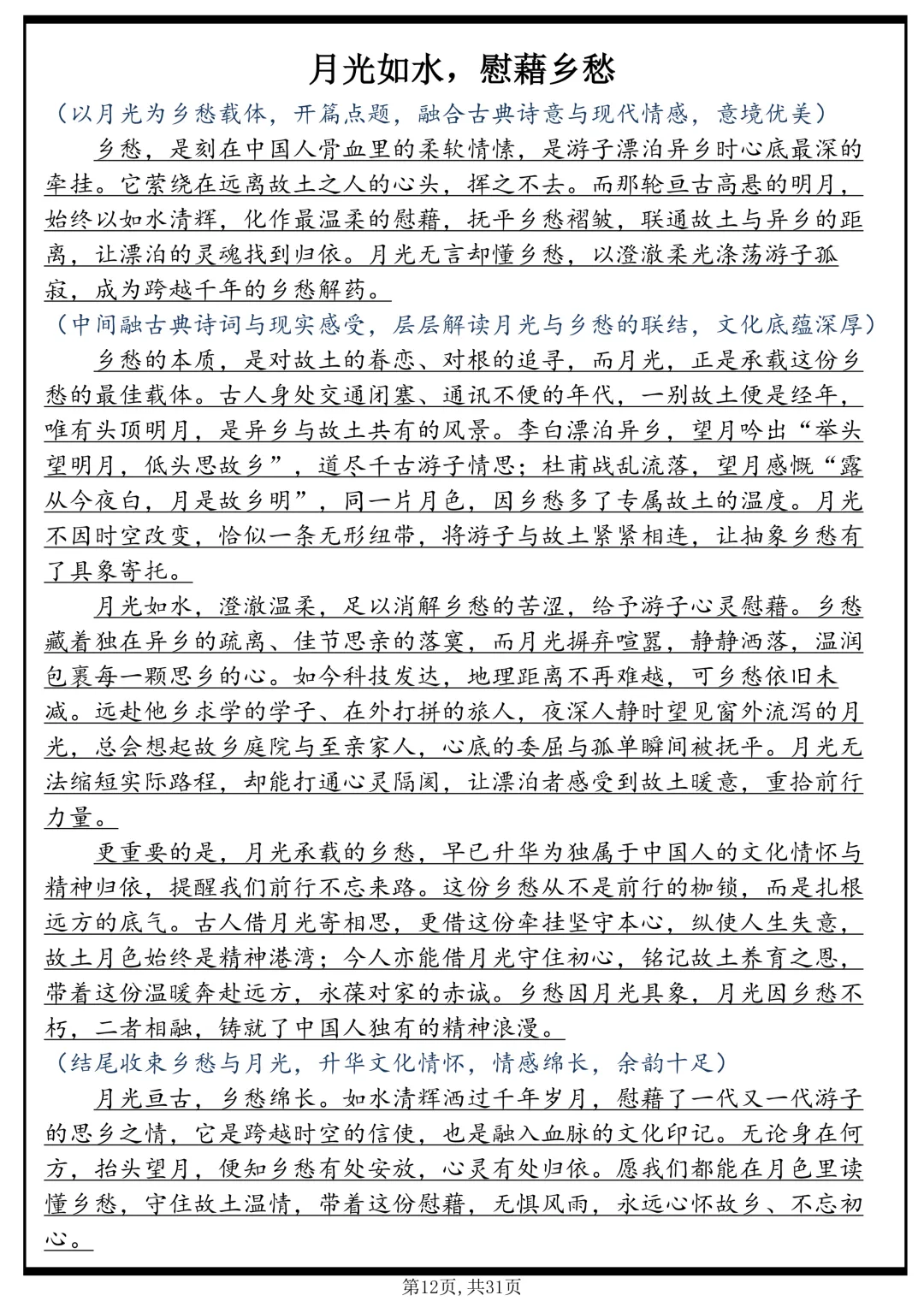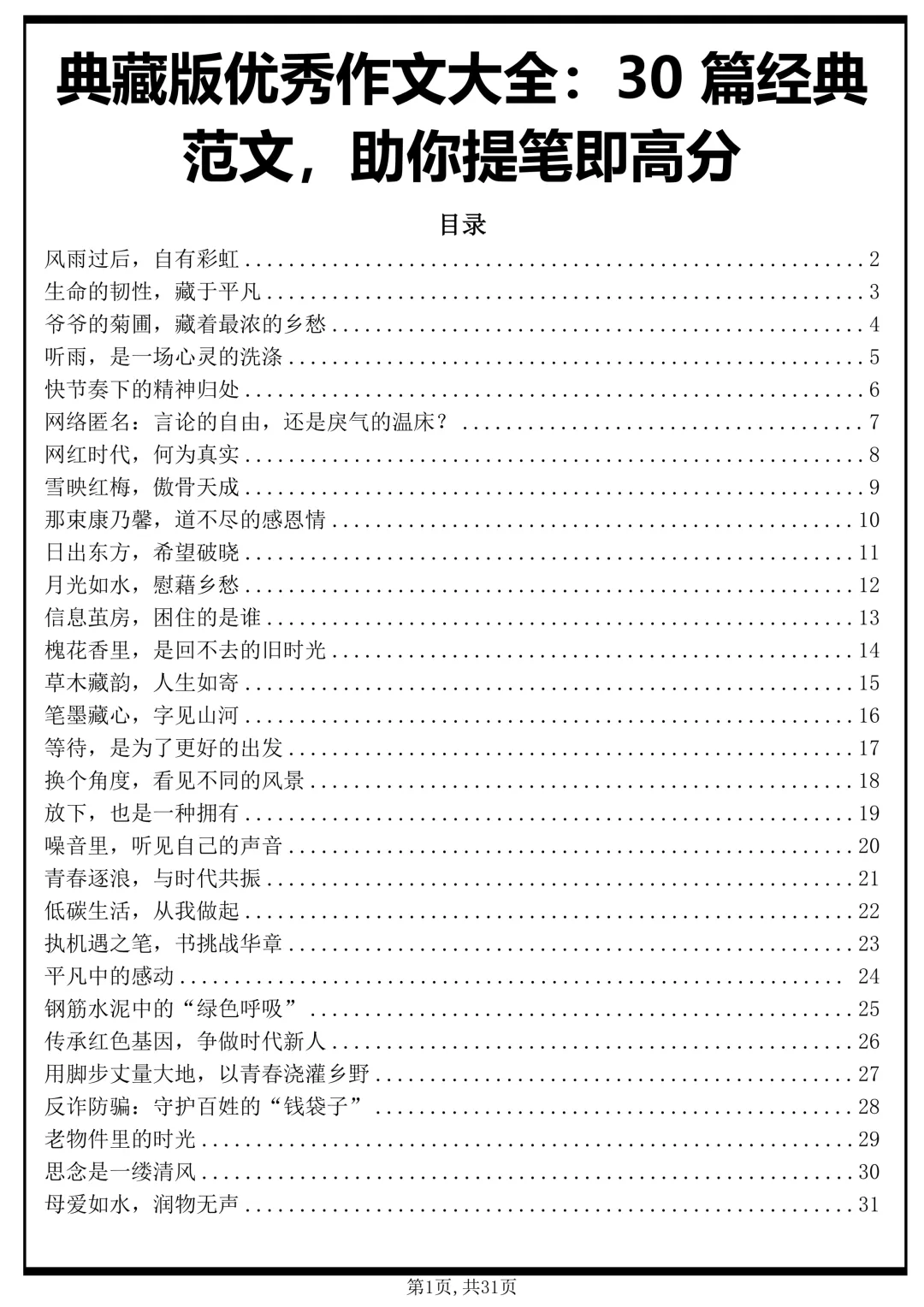 可打印的典藏版优秀作文大全:30 篇经典范文